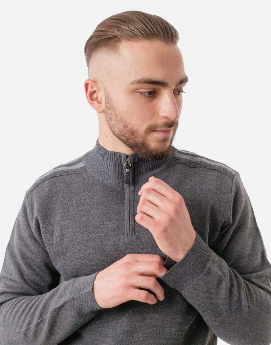 Elegancki Sweter Męski z Rozsuwaną Stójką
