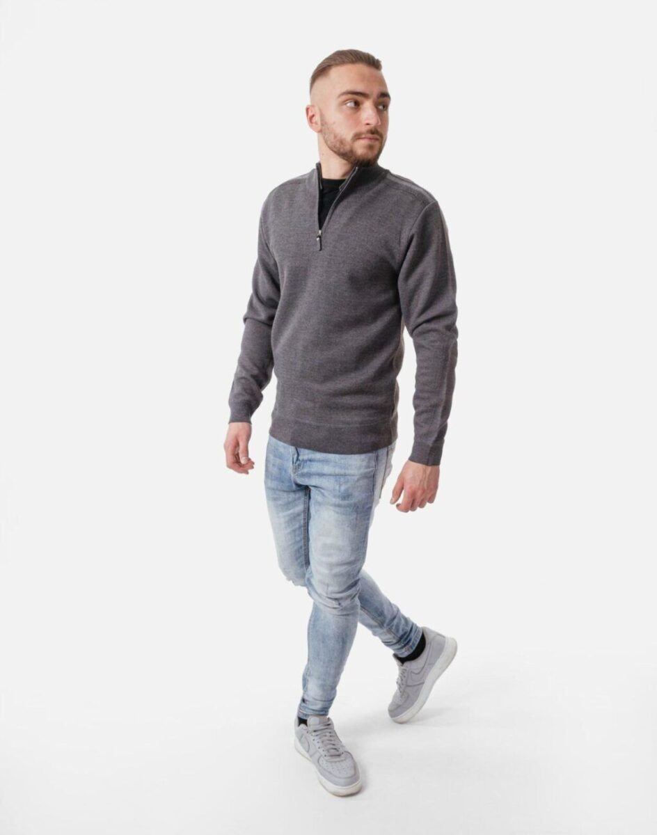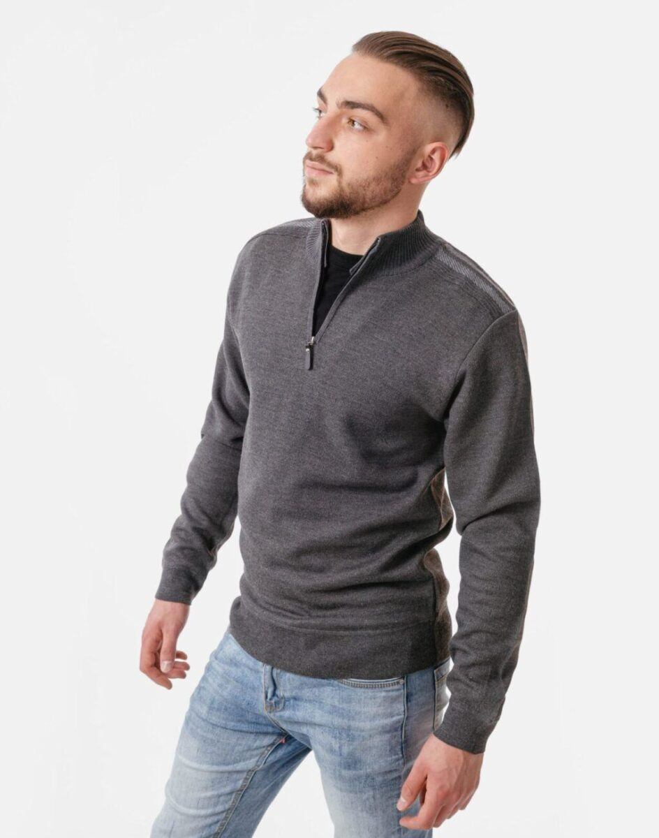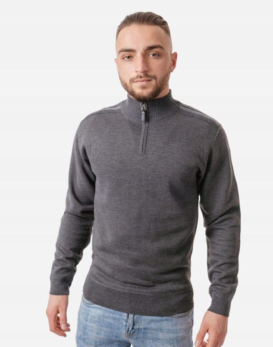 Elegancki Sweter Męski z Rozsuwaną Stójką