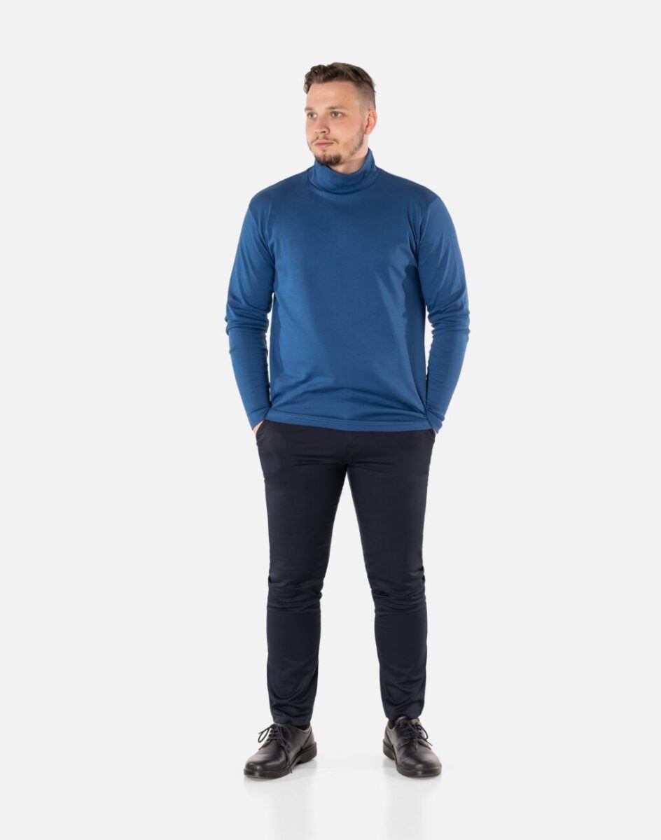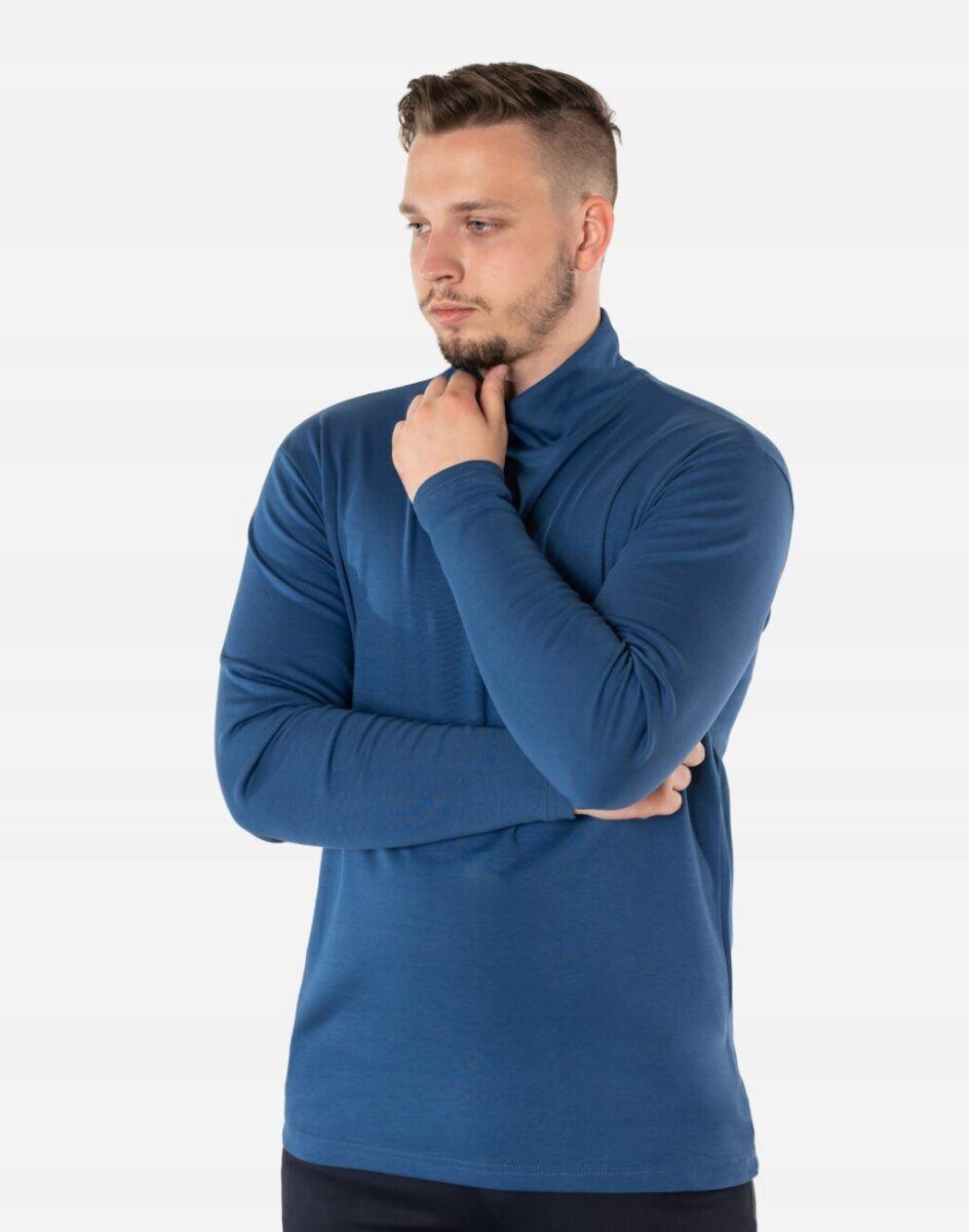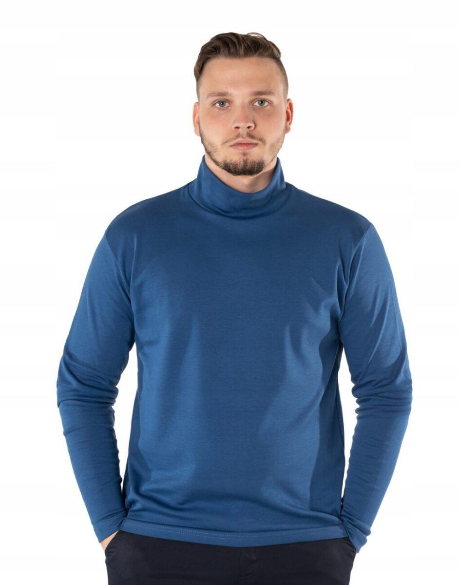Elegancki sweter półgolf męski z najnowszej kolekcji jesień/zima wyprodukowany z wysokogatunkowej przyjemnej w dotyku dzianiny 100% bawełnianej cechującej się wysoką trwałością i komfortem noszenia, to bardzo praktyczny szczególnie wiosną, jesienią i zimą element garderoby męskiej. Jest niezastąpiony zwłaszcza w chłodniejsze dni bo zasłania szyję i chroni gardło a często zastępuje nawet szalik co jest bardzo wygodne. Funkcjonalny i szykowny świetnie sprawdzi się również w roli zamiennika eleganckiej koszuli. Idealnie pasuje do każdego rodzaju marynarki, płaszcza lub kurtki. Ubrany w ten sposób mężczyzna będzie wyglądał na pewno elegancko ale również nieco tajemniczo…