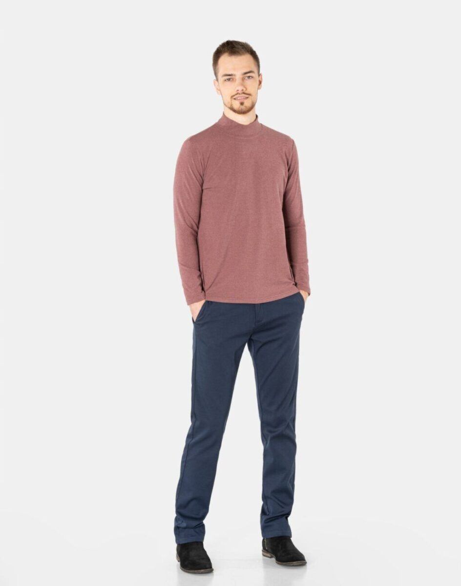 Elegancki sweter, półgolf męski, wyprodukowany z wysokogatunkowej przyjemnej w dotyku elastycznej dzianiny bawełnianej średniej grubości cechującej się wysoką trwałością i komfortem noszenia. Wewnętrzna strona zapewnia bardzo przyjemny kontakt ze skórą oraz komfort cieplny. Zewnętrzna powierzchnia swetra jest gładka. Elastyczna dzianina gwarantuje to, że półgolfy nigdy nie będą rozciągnięte i zachowają swój pierwotny fason.