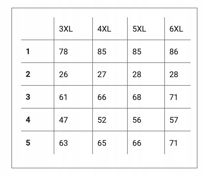 Rozmiar podany na metce przez producenta: 6XL (Sprawdź pozostałe wymiary w tabeli)