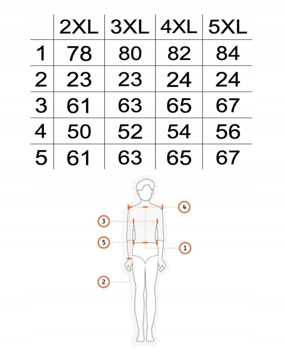 Proszę nie sugerować się rozmiarem podanym na metce przez producenta ( np: 2XL, 3XL czy 5XL) ponieważ różne firmy stosują bardzo różne oznaczenia rozmiaru na co my jako sprzedawcy na Allegro nie mamy żadnego wpływu. Najlepiej jest zmierzyć się dokładnie centymetrem a następnie porównać swoje wymiary z tabelą wymiarów podaną przez nas na aukcji i wybrać odpowiedni rozmiar.