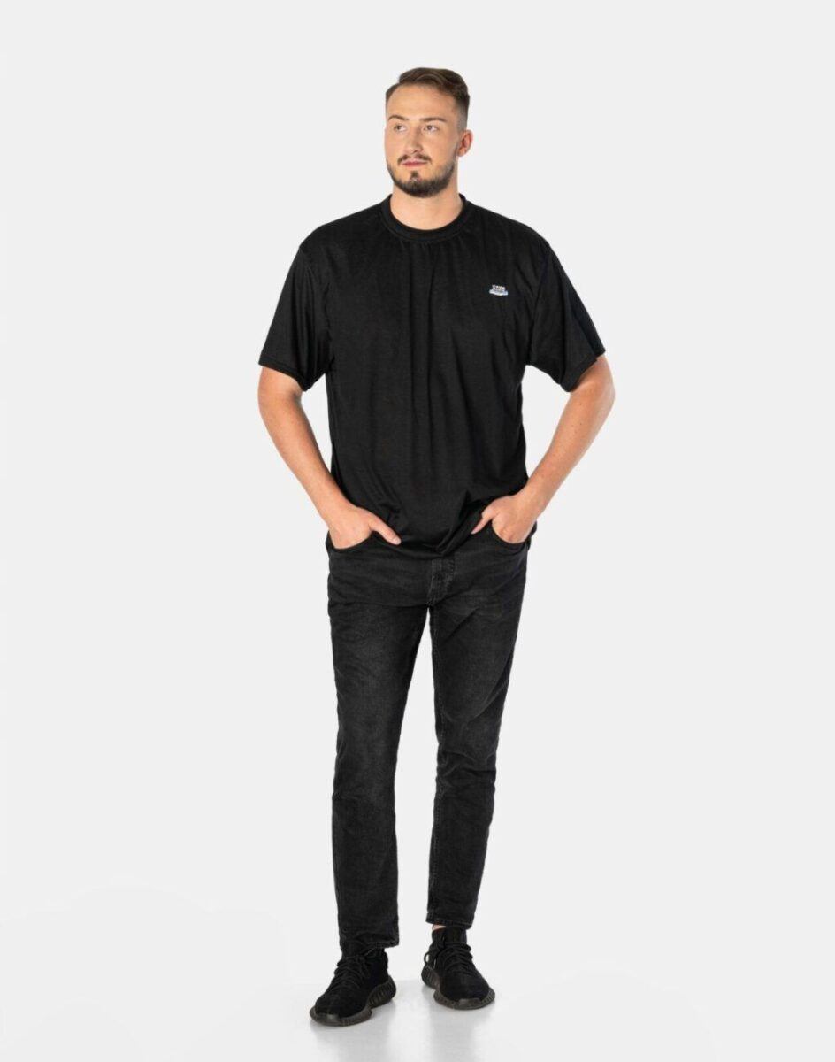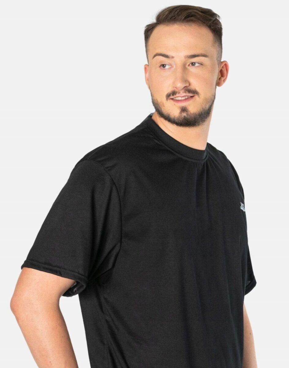 Komfortowa koszulka męska do codziennego użytku z krótkim rękawem i okrągłym dekoltem to wygodne rozwiązanie na ciepłe i gorące dni wiosny i lata oraz niezbędny element wakacyjnej garderoby. Cienka i przewiewna idealna na co dzień jako element casualowego stroju czyniąc go lekkim i dostosowanym do wysokich temperatur. Wykonana z naturalnej, miękkiej dzianiny bawełnianej z dodatkiem poliestru o gramaturze 160 g/m2 zapewniającej maksymalną wygodę i komfort użytkowania. Wysokiej jakości dzianina bawełniana gwarantuje wchłanianie potu i oddychanie skóry a dodatek poliestru to gwarancja pełnej swobody ruchów oraz stabilności rozmiarów i kolorów po wielokrotnym praniu. Z przodu na lewej piersi niewielkie firmowe logo w nowoczesnym designie. Tył gładki, jednolity. Odpowiedni krój koszulki nie ogranicza swobody ruchów, a odpowiednia na wiosnę, lato gramatura pozytywnie wpływa na komfort użytkowania. Świetna zarówno do uprawiania sportu jak i do noszenia na co dzień.