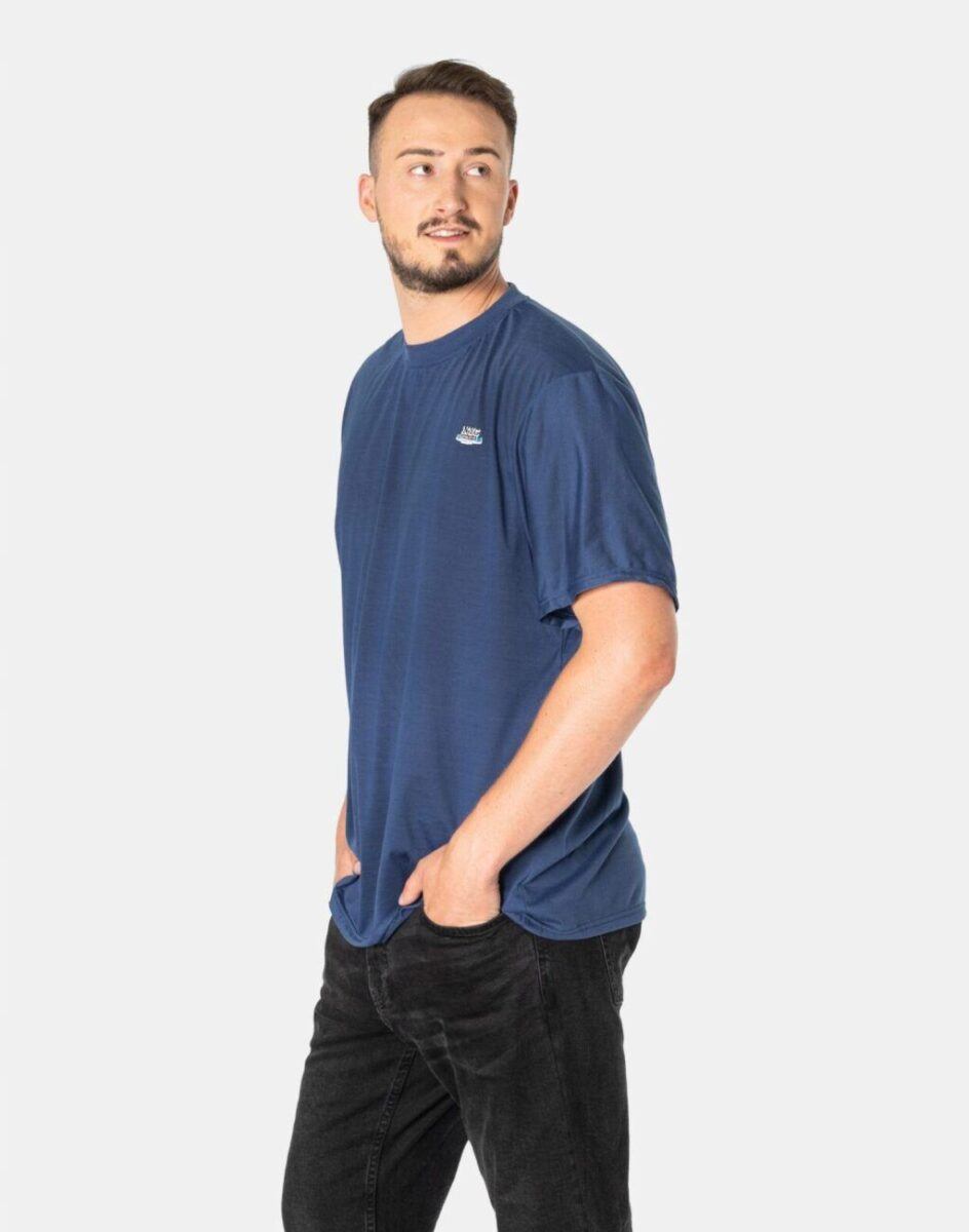 Komfortowa koszulka męska do codziennego użytku z krótkim rękawem i okrągłym dekoltem to wygodne rozwiązanie na ciepłe i gorące dni wiosny i lata oraz niezbędny element wakacyjnej garderoby. Cienka i przewiewna idealna na co dzień jako element casualowego stroju czyniąc go lekkim i dostosowanym do wysokich temperatur. Wykonana z naturalnej, miękkiej dzianiny bawełnianej z dodatkiem poliestru o gramaturze 160 g/m2 zapewniającej maksymalną wygodę i komfort użytkowania. Wysokiej jakości dzianina bawełniana gwarantuje wchłanianie potu i oddychanie skóry a dodatek poliestru to gwarancja pełnej swobody ruchów oraz stabilności rozmiarów i kolorów po wielokrotnym praniu. Z przodu na lewej piersi niewielkie firmowe logo w nowoczesnym designie. Tył gładki, jednolity. Odpowiedni krój koszulki nie ogranicza swobody ruchów, a odpowiednia na wiosnę, lato gramatura pozytywnie wpływa na komfort użytkowania. Świetna zarówno do uprawiania sportu jak i do noszenia na co dzień.