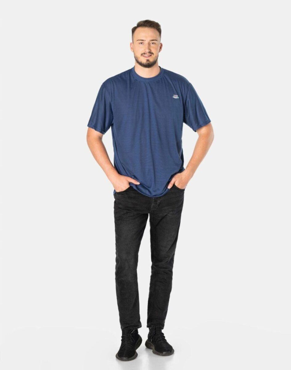 Komfortowa koszulka męska do codziennego użytku z krótkim rękawem i okrągłym dekoltem to wygodne rozwiązanie na ciepłe i gorące dni wiosny i lata oraz niezbędny element wakacyjnej garderoby. Cienka i przewiewna idealna na co dzień jako element casualowego stroju czyniąc go lekkim i dostosowanym do wysokich temperatur. Wykonana z naturalnej, miękkiej dzianiny bawełnianej z dodatkiem poliestru o gramaturze 160 g/m2 zapewniającej maksymalną wygodę i komfort użytkowania. Wysokiej jakości dzianina bawełniana gwarantuje wchłanianie potu i oddychanie skóry a dodatek poliestru to gwarancja pełnej swobody ruchów oraz stabilności rozmiarów i kolorów po wielokrotnym praniu. Z przodu na lewej piersi niewielkie firmowe logo w nowoczesnym designie. Tył gładki, jednolity. Odpowiedni krój koszulki nie ogranicza swobody ruchów, a odpowiednia na wiosnę, lato gramatura pozytywnie wpływa na komfort użytkowania. Świetna zarówno do uprawiania sportu jak i do noszenia na co dzień.
