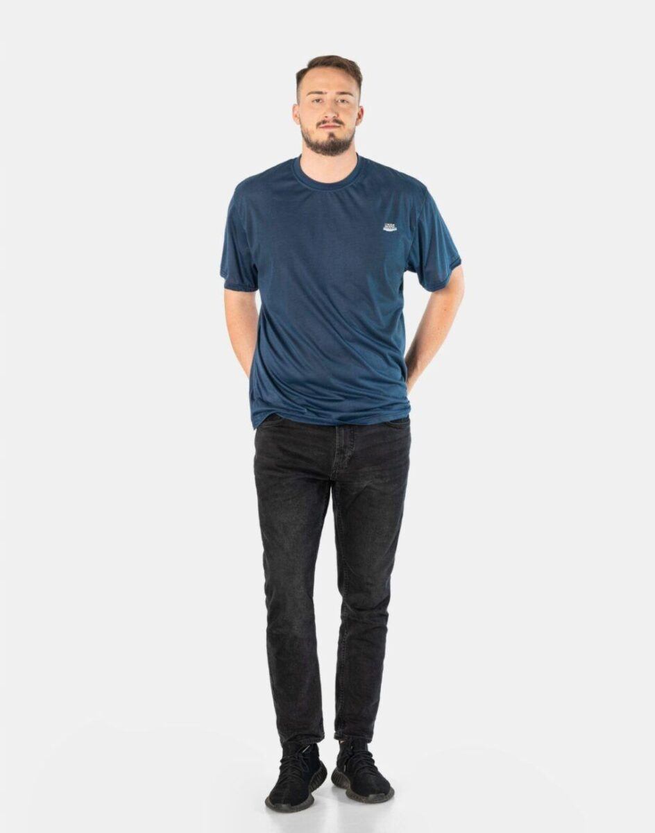 Komfortowa koszulka męska do codziennego użytku z krótkim rękawem i okrągłym dekoltem to wygodne rozwiązanie na ciepłe i gorące dni wiosny i lata oraz niezbędny element wakacyjnej garderoby. Cienka i przewiewna idealna na co dzień jako element casualowego stroju czyniąc go lekkim i dostosowanym do wysokich temperatur. Wykonana z naturalnej, miękkiej dzianiny bawełnianej z dodatkiem poliestru o gramaturze 160 g/m2 zapewniającej maksymalną wygodę i komfort użytkowania. Wysokiej jakości dzianina bawełniana gwarantuje wchłanianie potu i oddychanie skóry a dodatek poliestru to gwarancja pełnej swobody ruchów oraz stabilności rozmiarów i kolorów po wielokrotnym praniu. Z przodu na lewej piersi niewielkie firmowe logo w nowoczesnym designie. Tył gładki, jednolity. Odpowiedni krój koszulki nie ogranicza swobody ruchów, a odpowiednia na wiosnę, lato gramatura pozytywnie wpływa na komfort użytkowania. Świetna zarówno do uprawiania sportu jak i do noszenia na co dzień.