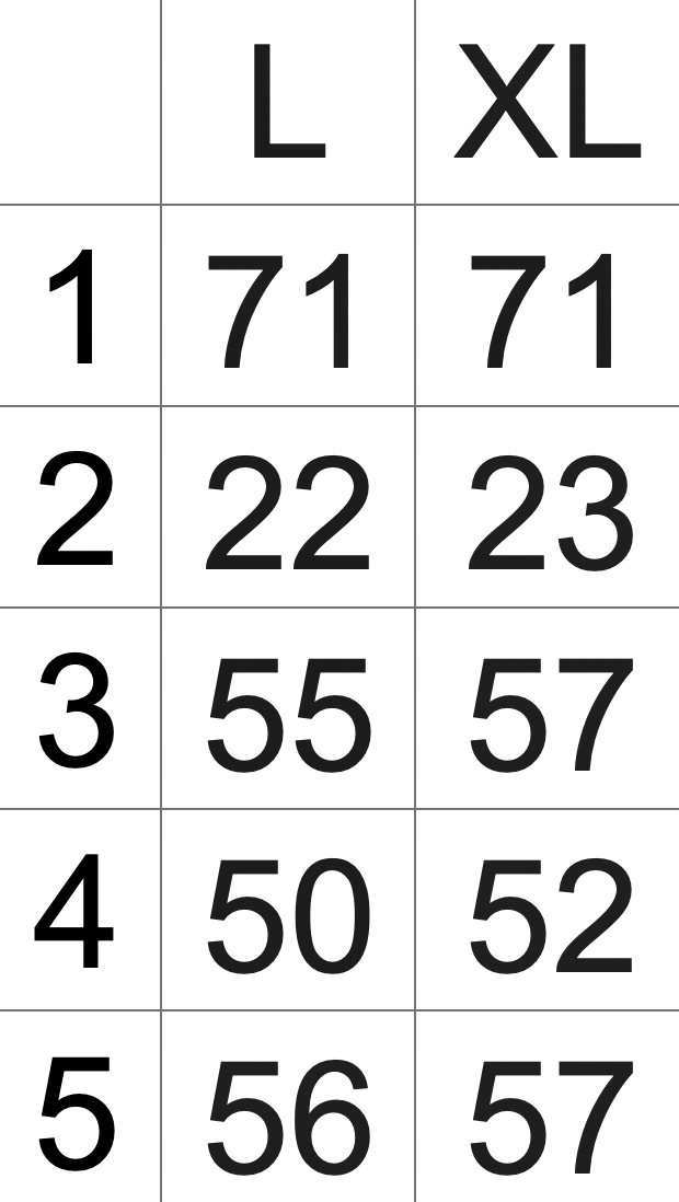 rozmiardługość całkowita (cm)długość rękawa (cm)szerokość pod pachami (cm)szerokość w ramionach (cm)szerokość na dole produktu (cm)