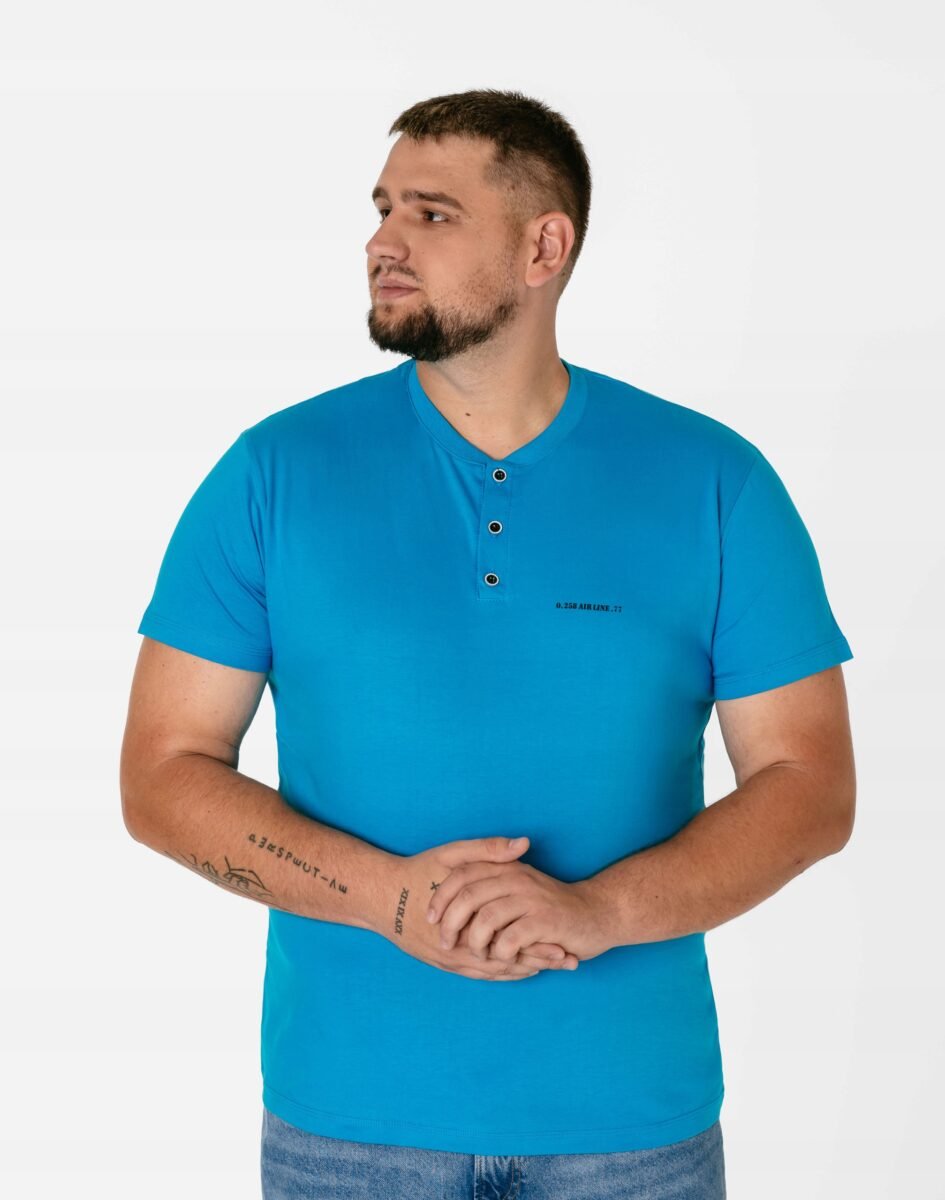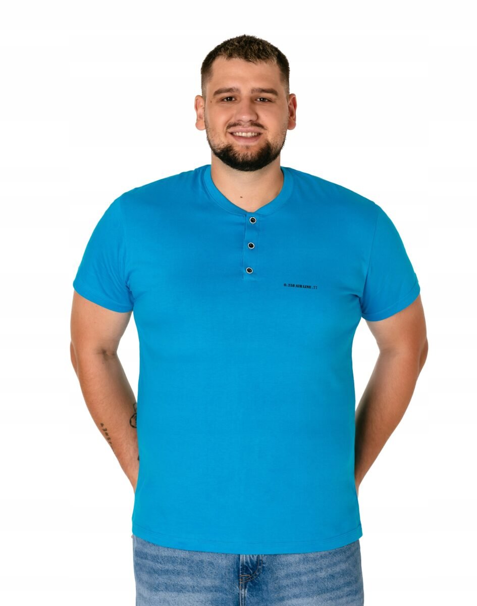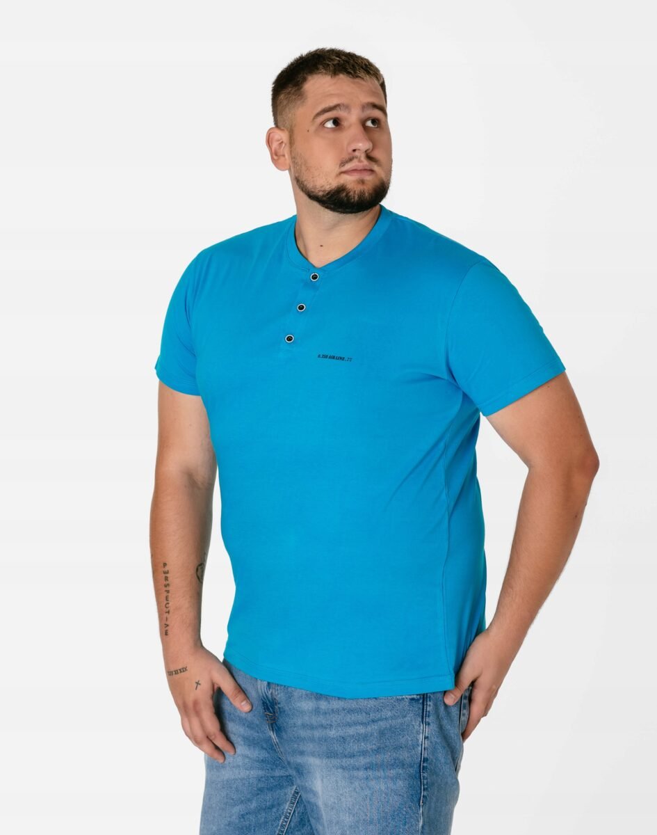 Komfortowa koszulka męska do codziennego użytku z krótkim rękawem i okrągłym dekoltem rozpinanym na 3 guziczki to wygodne rozwiązanie na ciepłe i gorące dni wiosny i lata oraz niezbędny element wakacyjnej garderoby i udanych letnich stylizacji. Cienka, przewiewna i oddychająca, idealna na co dzień jako element casualowego stroju czyniąc go lekkim i dostosowanym do wysokich temperatur. Wykonana z naturalnej, miękkiej, ekologicznej dzianiny 100% bawełnianej zapewniającej maksymalną wygodę i komfort użytkowania. Bawełna jest jednym z najlepiej oddychających i przyjaznych dla skóry materiałów. Jest przewiewna i lekka wyprodukowana z naturalnych materiałów, co sprawia iż gwarantuje dobre właściwości higroskopijne, świetnie pochłania pot i wodę, odprowadza je z powierzchni skóry przez co jest bardzo przyjemna w noszeniu. Zapewnia gwarancję pełnej swobody ruchów oraz stabilności rozmiarów i kolorów po wielokrotnym praniu. Z przodu koszulki niewielki firmowy nadruk w nowoczesnym designie. Tył gładki, jednolity. Klasyczny, prosty krój koszulki nie ogranicza swobody ruchów, a odpowiednia na wiosnę, lato niewielka gramatura pozytywnie wpływa na komfort użytkowania. Świetna zarówno do uprawiania sportu jak i do noszenia na co dzień.