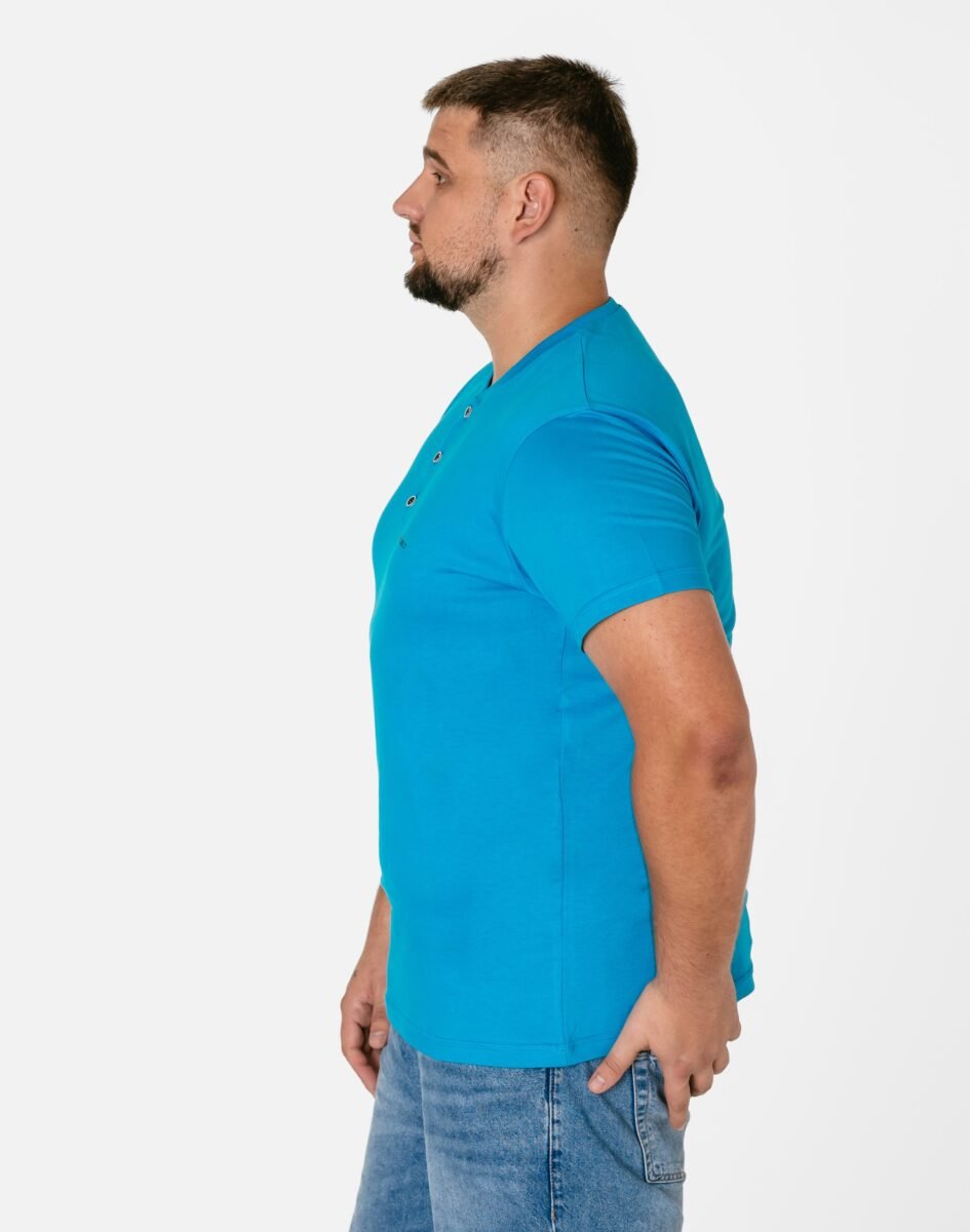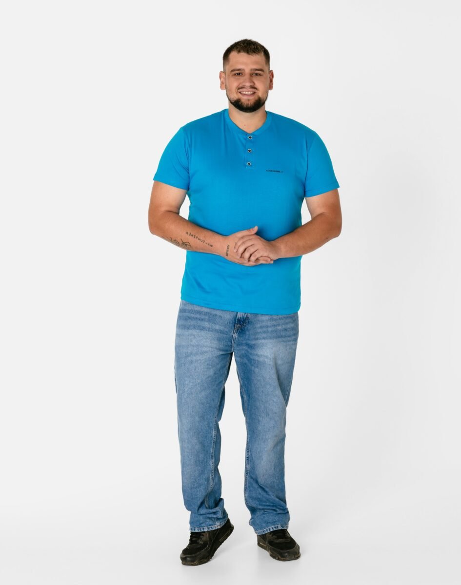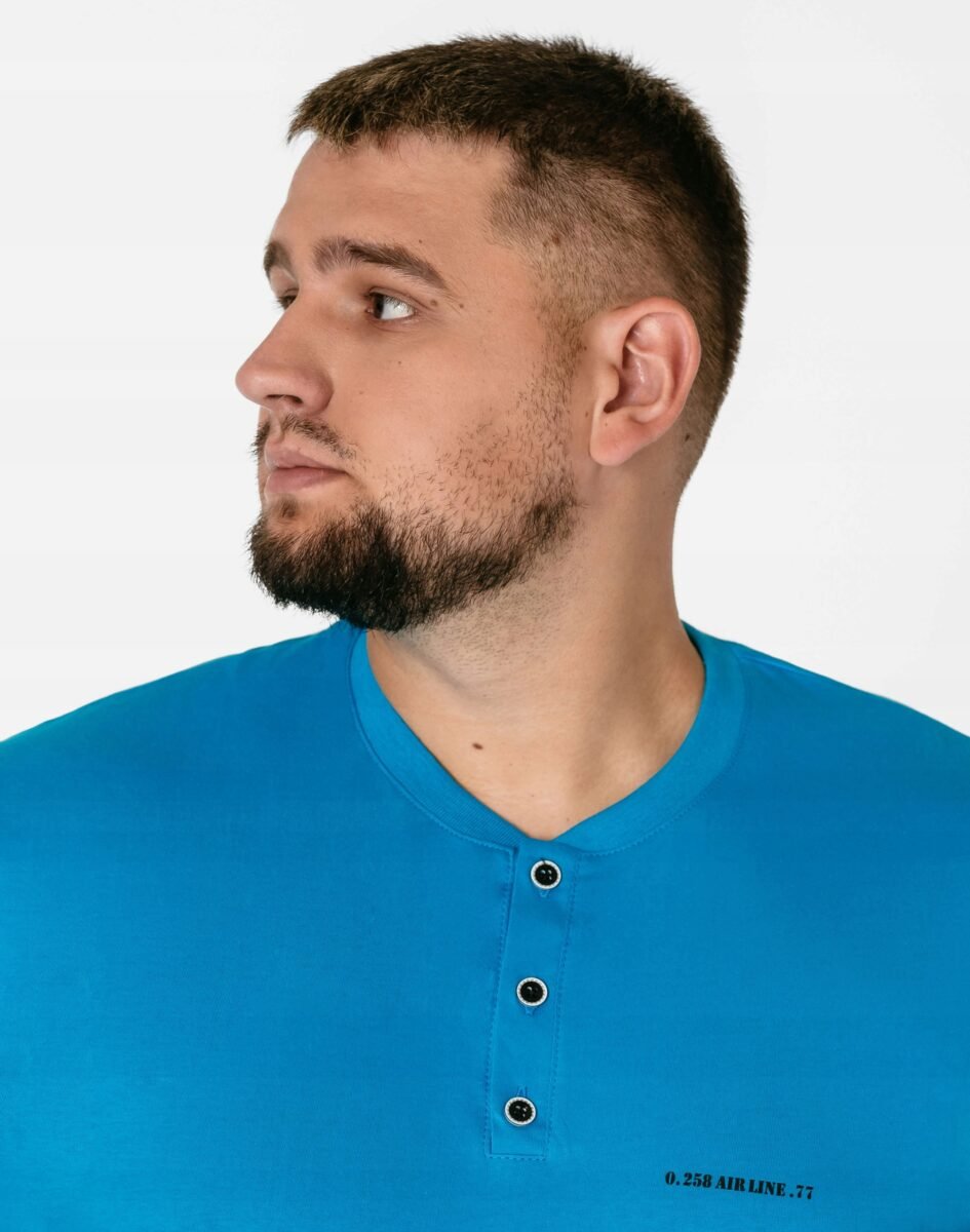 Komfortowa koszulka męska do codziennego użytku z krótkim rękawem i okrągłym dekoltem rozpinanym na 3 guziczki to wygodne rozwiązanie na ciepłe i gorące dni wiosny i lata oraz niezbędny element wakacyjnej garderoby i udanych letnich stylizacji. Cienka, przewiewna i oddychająca, idealna na co dzień jako element casualowego stroju czyniąc go lekkim i dostosowanym do wysokich temperatur. Wykonana z naturalnej, miękkiej, ekologicznej dzianiny 100% bawełnianej zapewniającej maksymalną wygodę i komfort użytkowania. Bawełna jest jednym z najlepiej oddychających i przyjaznych dla skóry materiałów. Jest przewiewna i lekka wyprodukowana z naturalnych materiałów, co sprawia iż gwarantuje dobre właściwości higroskopijne, świetnie pochłania pot i wodę, odprowadza je z powierzchni skóry przez co jest bardzo przyjemna w noszeniu. Zapewnia gwarancję pełnej swobody ruchów oraz stabilności rozmiarów i kolorów po wielokrotnym praniu. Z przodu koszulki niewielki firmowy nadruk w nowoczesnym designie. Tył gładki, jednolity. Klasyczny, prosty krój koszulki nie ogranicza swobody ruchów, a odpowiednia na wiosnę, lato niewielka gramatura pozytywnie wpływa na komfort użytkowania. Świetna zarówno do uprawiania sportu jak i do noszenia na co dzień.