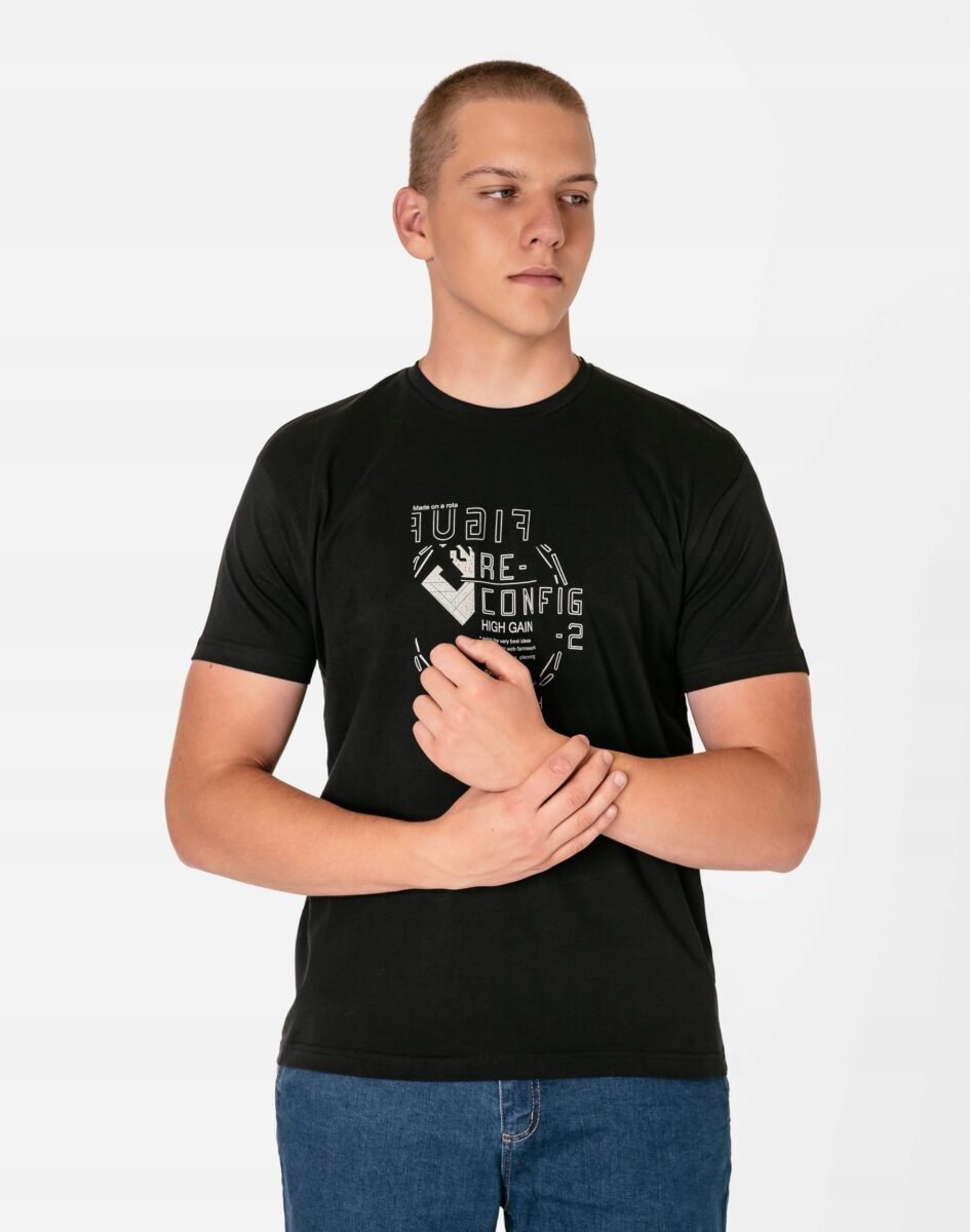 Komfortowa koszulka męska do codziennego użytku z krótkim rękawem i okrągłym dekoltem to wygodne rozwiązanie na ciepłe i gorące dni wiosny i lata oraz niezbędny element wakacyjnej garderoby i udanych letnich stylizacji. Cienka, przewiewna i oddychająca, idealna na co dzień jako element casualowego stroju czyniąc go lekkim i dostosowanym do wysokich temperatur. Wykonana z naturalnej, miękkiej, ekologicznej dzianiny 100% bawełnianej o gramaturze 190 g/m2 zapewniającej maksymalną wygodę i komfort użytkowania. Bawełna jest jednym z najlepiej oddychających i przyjaznych dla skóry materiałów. Jest przewiewna i lekka wyprodukowana z naturalnych materiałów, co sprawia iż gwarantuje dobre właściwości higroskopijne, świetnie pochłania pot i wodę, odprowadza je z powierzchni skóry przez co jest bardzo przyjemna w noszeniu. Zapewnia gwarancję pełnej swobody ruchów oraz stabilności rozmiarów i kolorów po wielokrotnym praniu. Z przodu naniesiony metodą termotransferową FLEX/FLOCK wytrzymały firmowy nadruk w nowoczesnym designie. Tył gładki, jednolity. Klasyczny, prosty krój koszulki nie ogranicza swobody ruchów, a odpowiednia na wiosnę, lato niewielka gramatura pozytywnie wpływa na komfort użytkowania. Świetna zarówno do uprawiania sportu jak i do noszenia na co dzień.