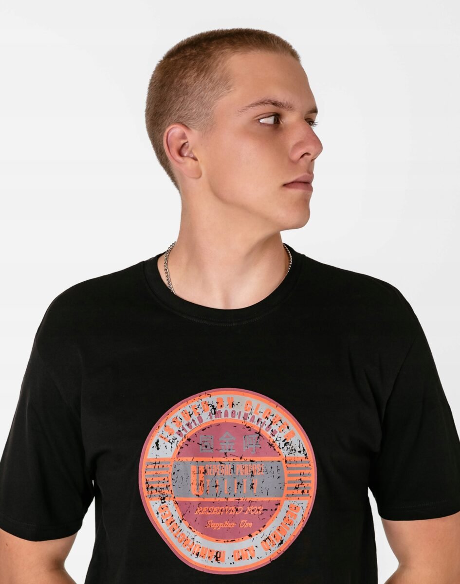 Komfortowa koszulka męska do codziennego użytku z krótkim rękawem i okrągłym dekoltem to wygodne rozwiązanie na ciepłe i gorące dni wiosny i lata oraz niezbędny element wakacyjnej garderoby i udanych letnich stylizacji. Cienka, przewiewna i oddychająca, idealna na co dzień jako element casualowego stroju czyniąc go lekkim i dostosowanym do wysokich temperatur. Wykonana z naturalnej, miękkiej, ekologicznej dzianiny 100% bawełnianej o gramaturze 190 g/m2 zapewniającej maksymalną wygodę i komfort użytkowania. Bawełna jest jednym z najlepiej oddychających i przyjaznych dla skóry materiałów. Jest przewiewna i lekka wyprodukowana z naturalnych materiałów, co sprawia iż gwarantuje dobre właściwości higroskopijne, świetnie pochłania pot i wodę, odprowadza je z powierzchni skóry przez co jest bardzo przyjemna w noszeniu. Zapewnia gwarancję pełnej swobody ruchów oraz stabilności rozmiarów i kolorów po wielokrotnym praniu. Z przodu naniesiony metodą termotransferową FLEX/FLOCK wytrzymały firmowy nadruk w nowoczesnym designie. Tył gładki, jednolity. Klasyczny, prosty krój koszulki nie ogranicza swobody ruchów, a odpowiednia na wiosnę, lato niewielka gramatura pozytywnie wpływa na komfort użytkowania. Świetna zarówno do uprawiania sportu jak i do noszenia na co dzień.