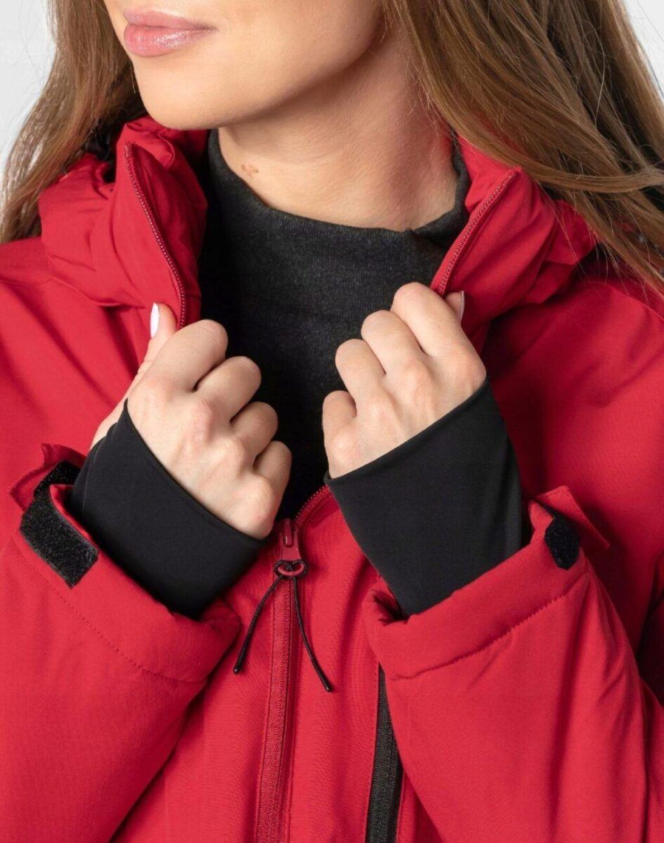 - Zintegrowany, antypoślizgowy pas przeciwśnieżny, zabezpieczający przed utratą ciepła i zapobiegający dostawaniu się zimna, wilgoci, wody, od spodu kurtki.